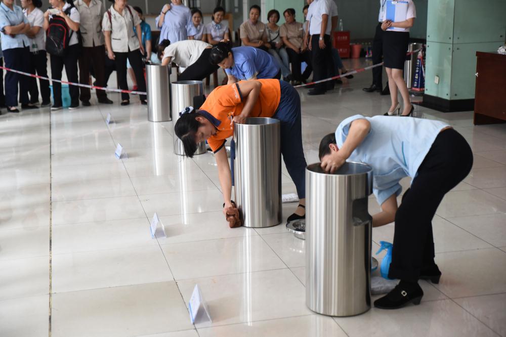 为提升保洁人员综合素质,促使其掌握更多的技能,环境组比赛设置中除必选科目外(清洁剂辨别、垃圾桶套袋),还增加了抽签科目(尘推组装、演示与拆卸,玻璃擦拭,不锈钢垃圾桶清洁,灭火器材检查与清洁,吸尘器拆卸与组装,办公桌椅的清洁)。内容上覆盖更广、更贴近工作实际,也增加了结果偶然性。