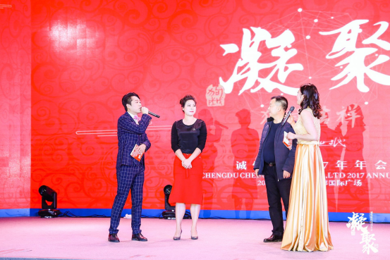 二月春来,新的轮回即将开启新的美好,值此辞旧迎新之际,2018年2月3日,诚悦时代2017年度“凝聚”主题迎春表彰联欢会在菁蓉国际广场隆重举行。公司董事长唐冰先生、公司股东四川科迪置业有限公司董事长严志美女士、公司董事兼CEO张怀林先生等公司领导,成都文殊坊经营管理有限责任公司、中国东方电气集团有限公司、四川泰然集团、摩根中心成都广联置业有限责任公司、广安锦绣山河佳兴物业公司、城南名著业委会等业主方代表,成都泰阳物业等受邀嘉宾及项目员工共300余人齐聚一堂,畅享盛会。年会融团队秀、优秀表彰大会、节目表演于一体,完美演绎“凝聚”主题,让参会人员既欣赏到艺术之美,更得到心灵的洗礼!